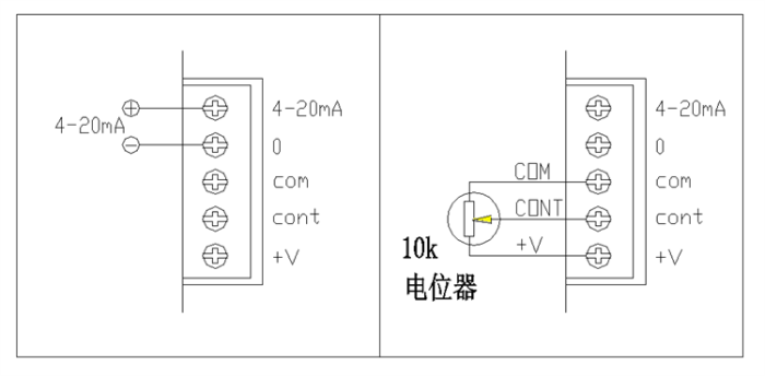 4、 本產(chǎn)品不需要外接工作電源。如需讓模塊停止輸出,可斷開4-20mA控制信號或者斷開電位器,模塊即停止輸出。