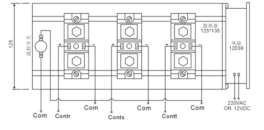 本系統(tǒng)主要應(yīng)用于大功率電加熱控制、變壓器原邊調(diào)壓等場(chǎng)合,由一個(gè)三相移相觸發(fā)器LSJK-TSR型或LSJK-TSRG型、三個(gè)200A(或300A、400A)的隨機(jī)型固態(tài)繼電器SSR、一個(gè)A型散熱器、一個(gè)交流風(fēng)扇12038組合而成,適合各類機(jī)械、礦山、化工、紡織、及其他機(jī)電一體化等領(lǐng)域。