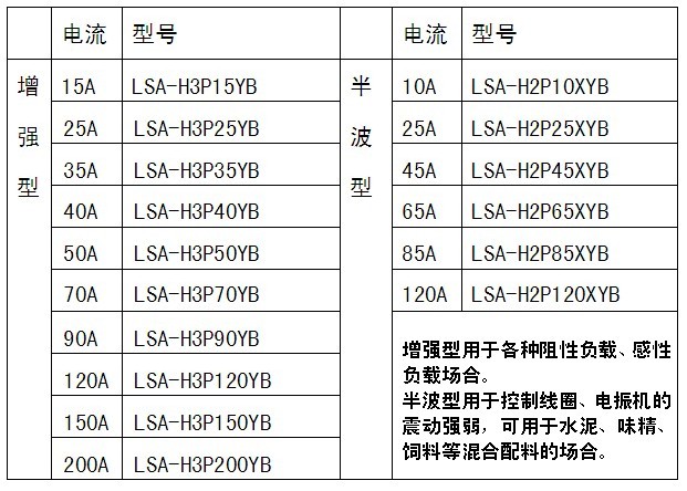 注:帶有閉環(huán)(負(fù)反饋)功能的產(chǎn)品,型號(hào)在上述基礎(chǔ)上增加后綴-F,格式為L(zhǎng)SA-H2P口口YB-F 。閉環(huán)產(chǎn)品均適用于220V負(fù)載。