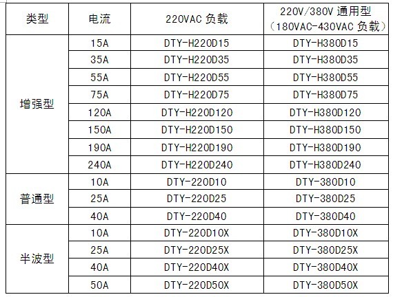 DTY系列單相交流調(diào)壓模塊型號(hào)如下表: