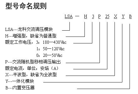 LSA系列單相交流調(diào)壓模塊型號(hào)如下表: