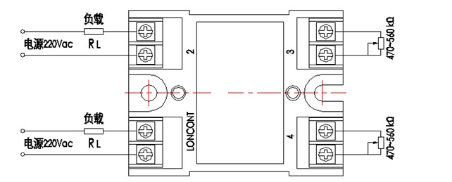 LSA-R系列(英文名稱為Loncont Solid-State Adjuster)固態(tài)調(diào)壓器內(nèi)部集移相觸發(fā)電路、放大驅(qū)動電路、阻容吸收回路、單向或雙向可控硅等于一體,通過電位器手動調(diào)節(jié)以改變阻性負載上的電壓,以調(diào)節(jié)輸出功率。固態(tài)調(diào)壓器應用在110-265Vac電網(wǎng)上,外接470K-560K電位器,移相范圍0°-170°,斷態(tài)漏電流小于12mA。增強型由于內(nèi)置專門的驅(qū)動電路,在大電流使用條件下性能穩(wěn)定。
