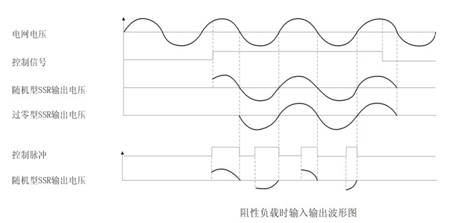 由于觸發(fā)信號方式不同,過零型和隨機型之間的區(qū)別主要在于負載交流電流導(dǎo)通的條件不同。當(dāng)輸入端施加有效的控制信號時,隨機型LSR負載輸出端立即導(dǎo)通(速度為微秒級),而過零型LSR則要等到負載電壓過零區(qū)域(約±15V)時才開啟導(dǎo)通。當(dāng)輸入端撤消控制信號后,過零型和隨機型LSR均在小于維持電流時關(guān)斷,這兩種類型的關(guān)斷條件相同。雖然過零型LSR有可能造成最大半個周期的延時,但卻減少了對負載的沖擊和產(chǎn)生的射頻干擾,在負載上可以得到一個完整的正弦波形,成為理想的開關(guān)器件,在“單刀單擲”的開關(guān)場合中應(yīng)用最為廣泛。 隨機型LSR的特點是反應(yīng)速度快,它可以用控制移相觸發(fā)脈沖來方便地改變負載的交流工作電壓,從而應(yīng)用于精確地調(diào)溫、調(diào)光等阻性負載及部分感性負載場合。