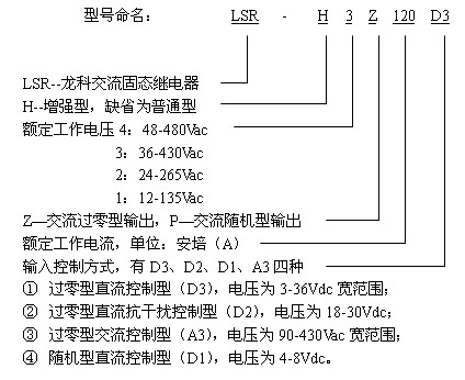 交流固體繼電器按開關(guān)方式分有電壓過零導(dǎo)通型(簡稱過零型)和隨機導(dǎo)通型(簡稱隨機型);按輸出開關(guān)元件分有雙向可控硅輸出型(普通型)和單向可控硅反并聯(lián)型(增強型);按安裝方式分有印刷線路板上用的針插式(自然冷卻,不必帶散熱器)和固定在金屬底板上的裝置式(靠散熱器冷卻);另外輸入端①直流恒流控制型(D3),電壓為3-36Vdc寬范圍,驅(qū)動電流為5-15mA;②直流抗干擾控制型(D2),電壓為18-30Vdc;③串電阻限流型(D1),電壓為4-8Vdc,專用于隨機型LSR;④交流控制型(A3),電壓為90-430Vac寬范圍。